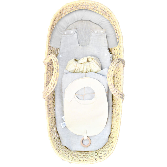 Wholesome Linen's Organic Flax Baby Bassinet Mattress Newborn Essentials & Linen Bedding - PREMIUM Set Includes: